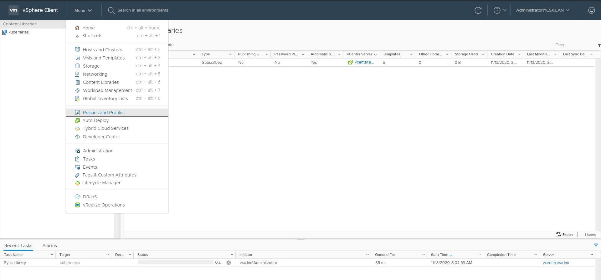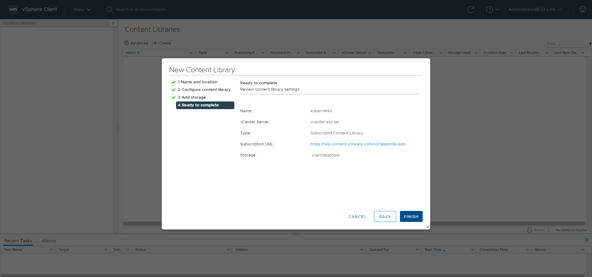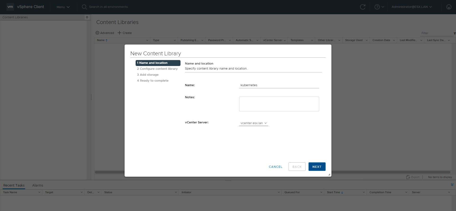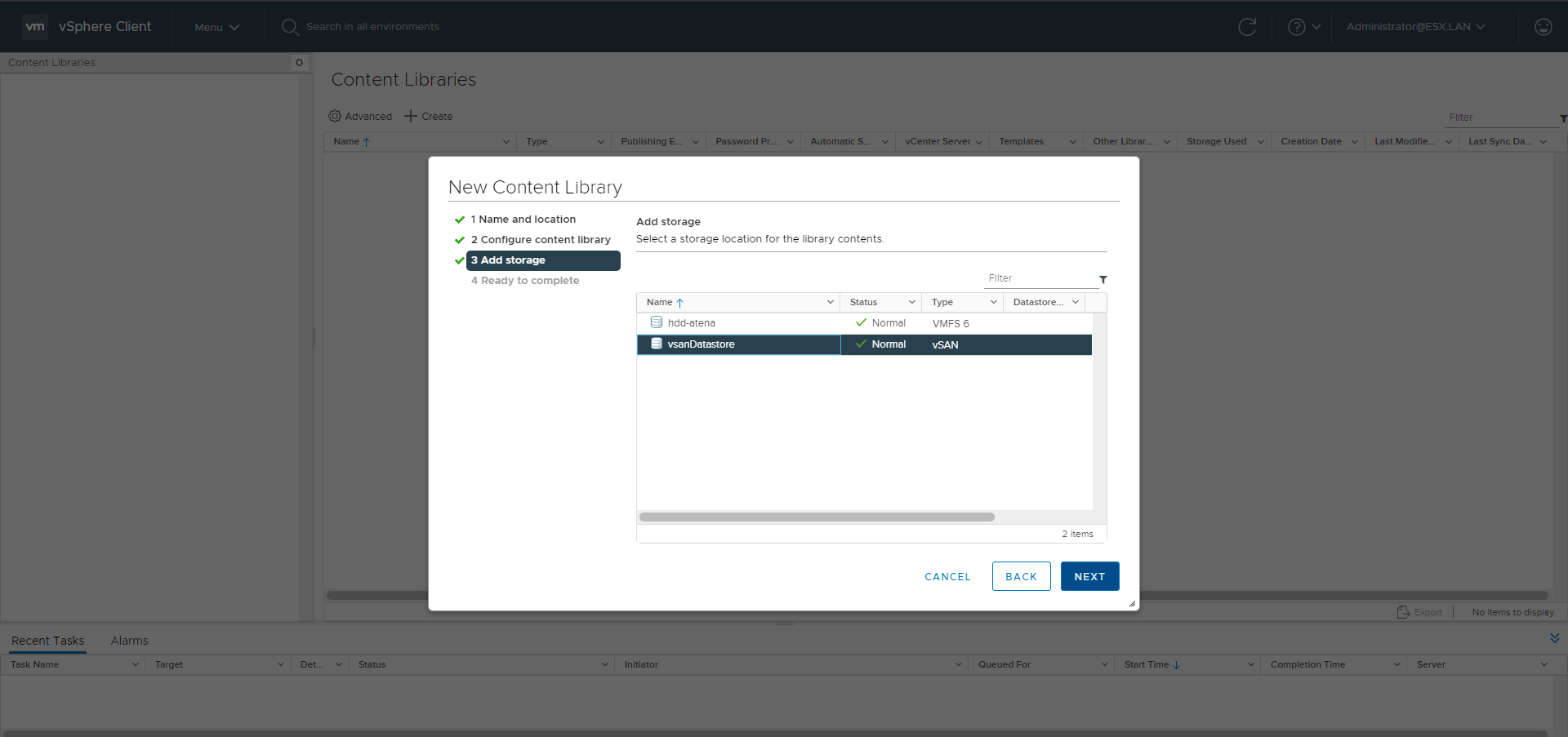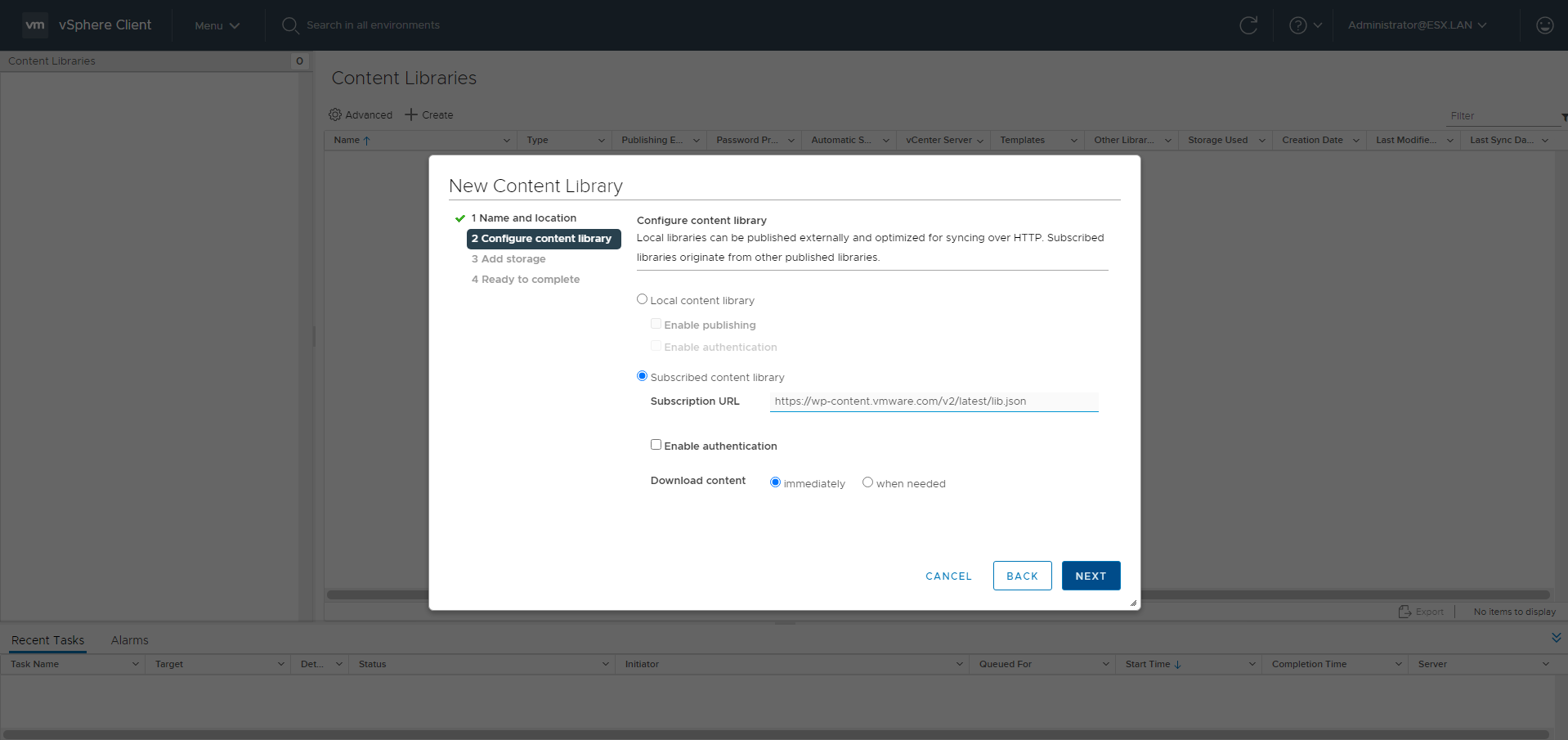 Add the Content Library clicking ADD