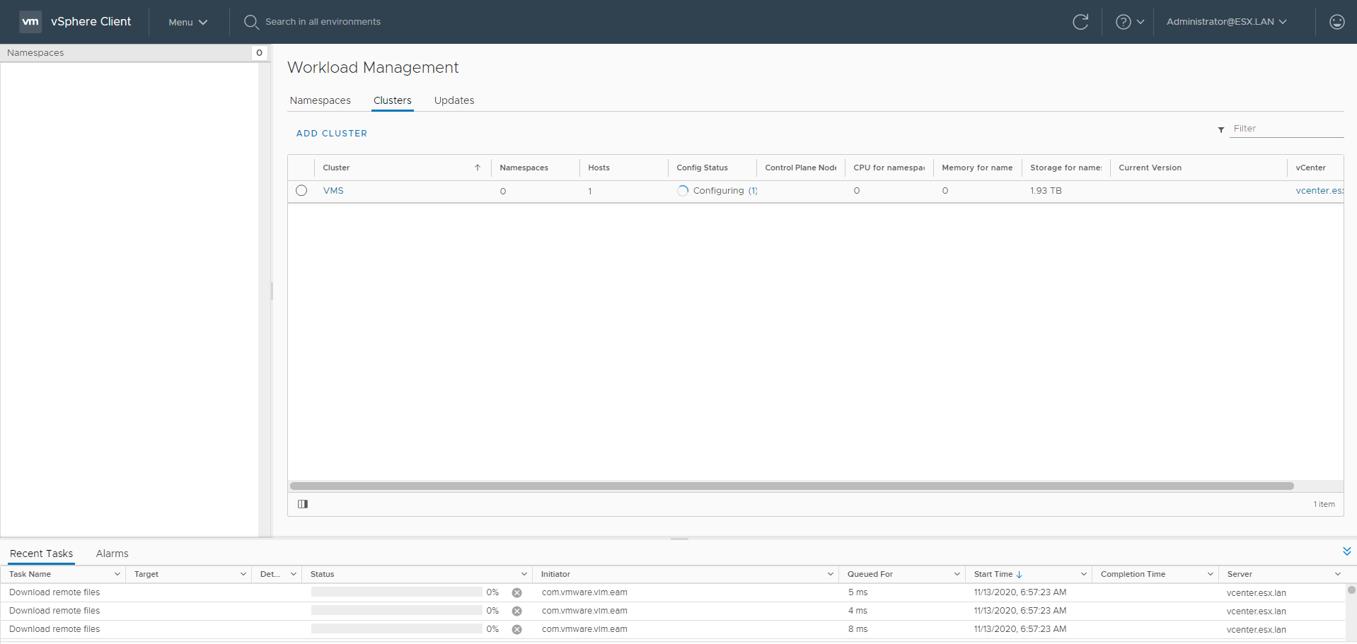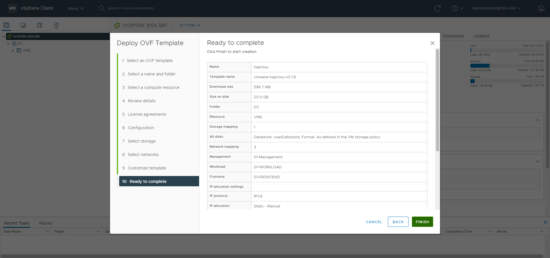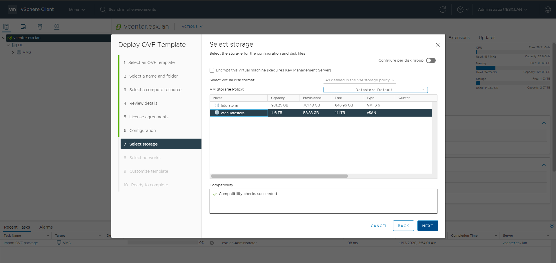 - vSAN configured