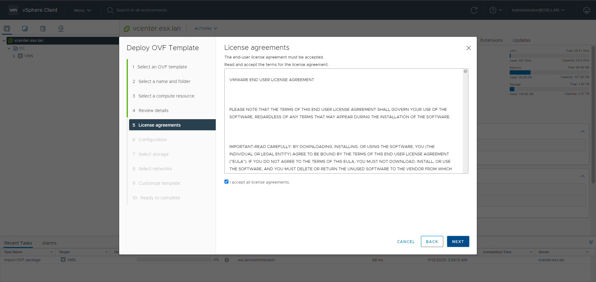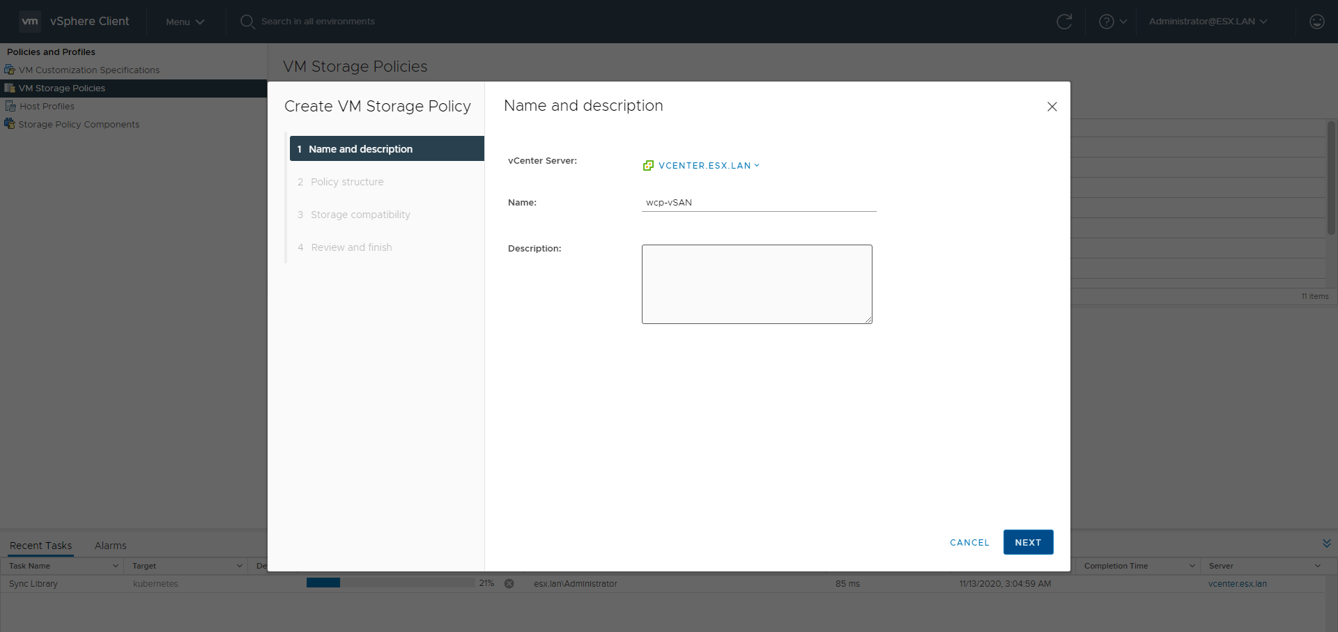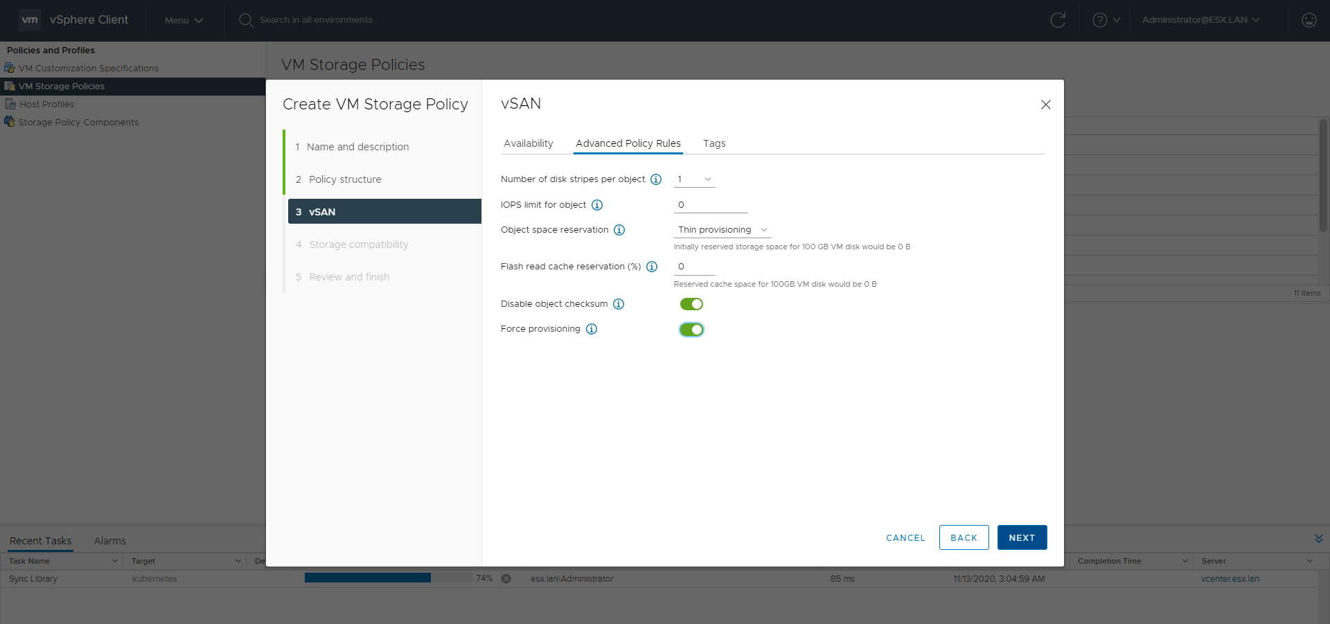 - vSAN configured