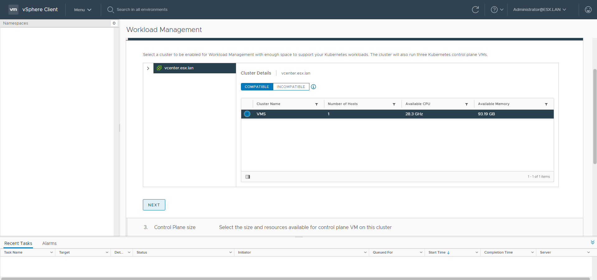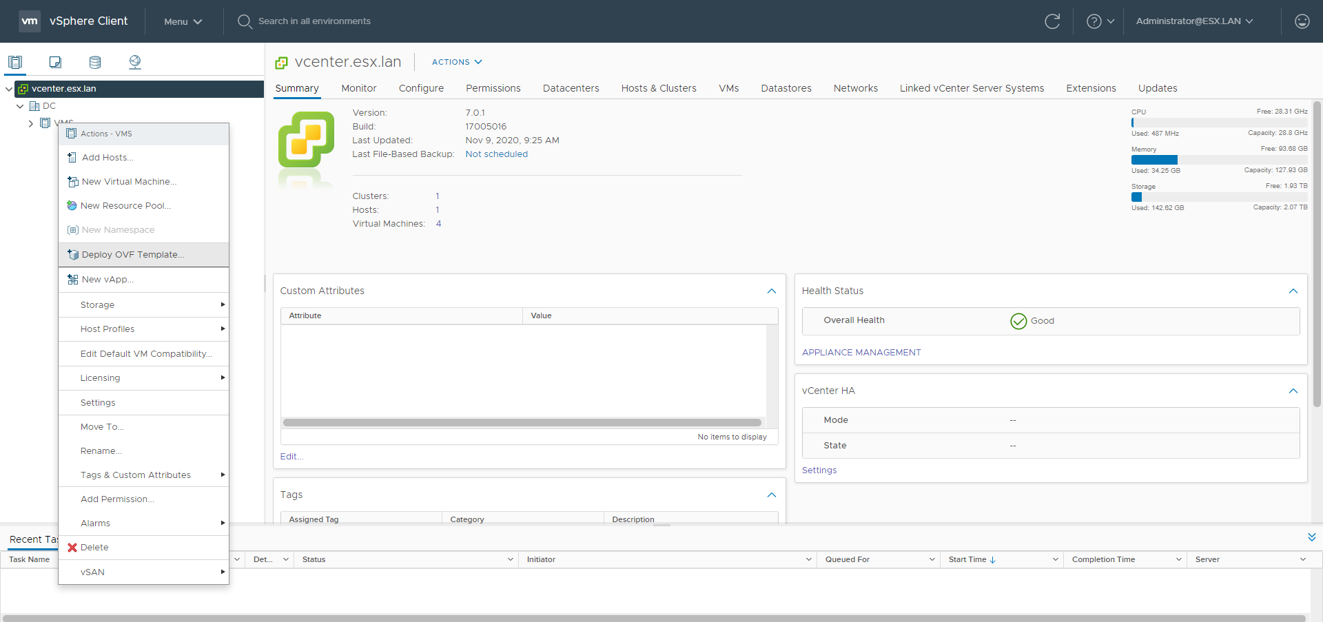 - A VMware vCenter 7.0.1 installed