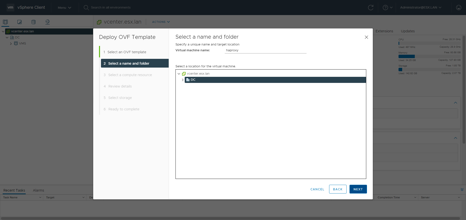Go to the Hosts and Clusters menu.