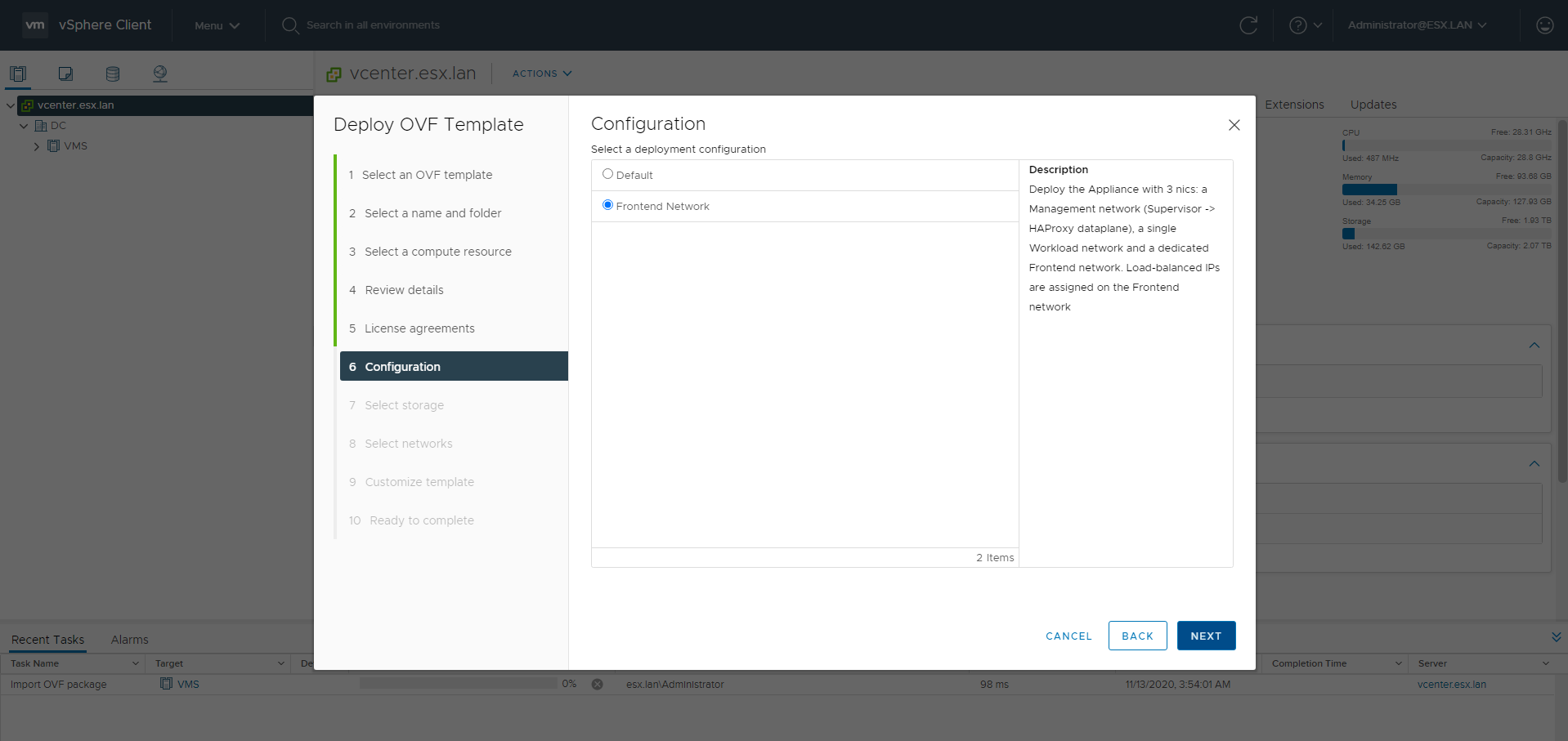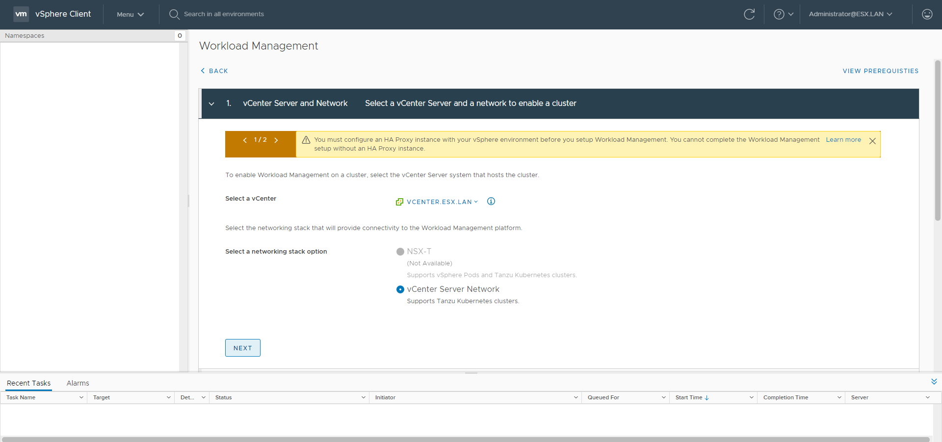With the new vCenter 7.0.1 it is possible to deploy the Workload Management feature using the vCenter Server Network instead of NSX-T. I wanted to try it out immediately and this is my experience.