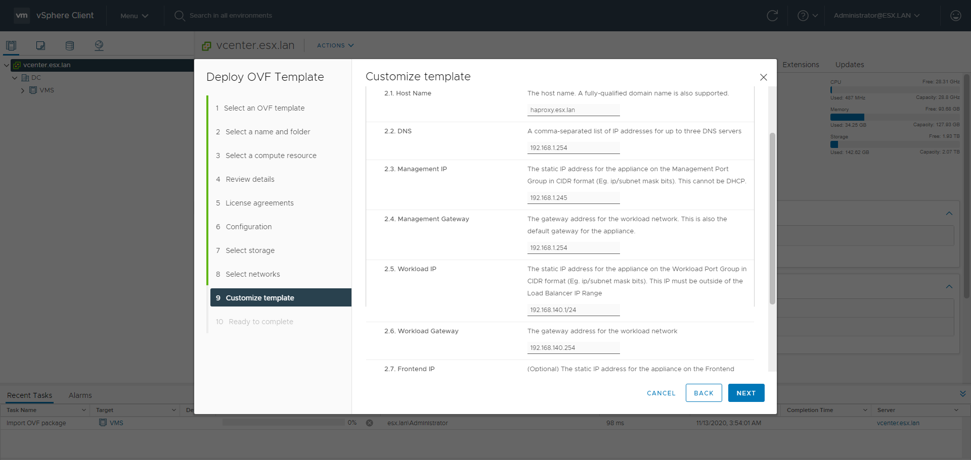 - HAproxy workload IP: 192.168.140.1