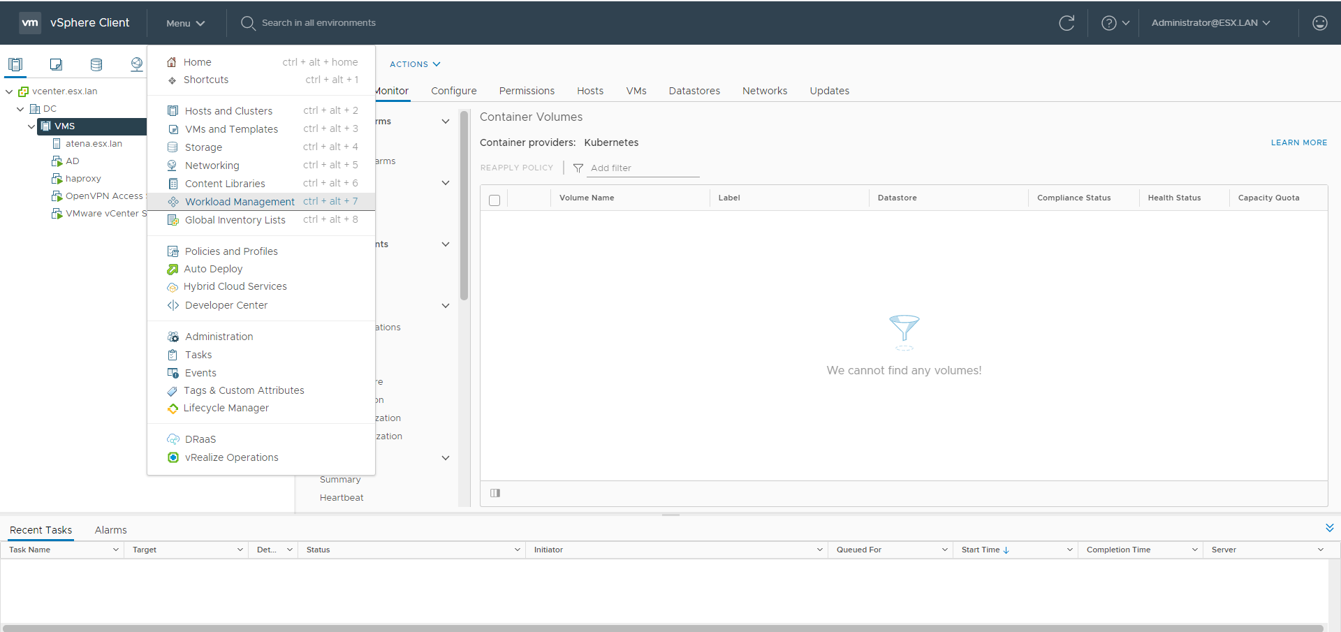 Go to the Workload Management menu
