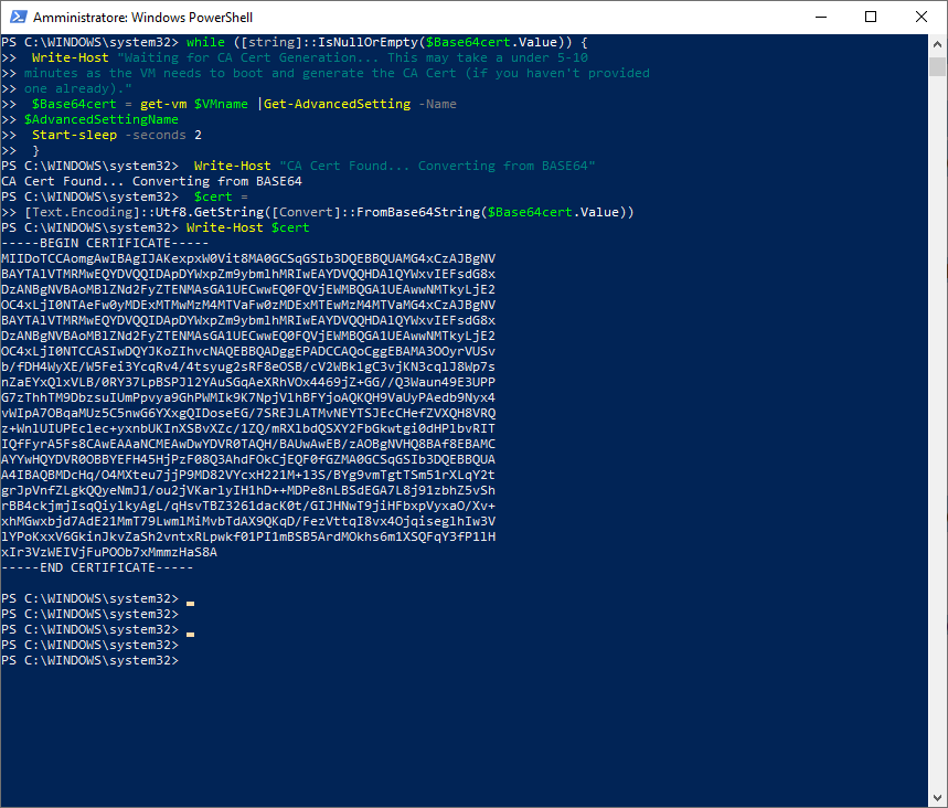 Write-Host "Waiting for CA Cert Generation... This may take a under 5-10