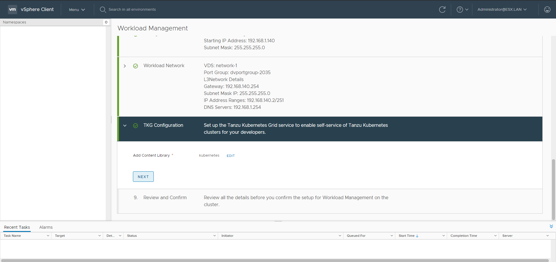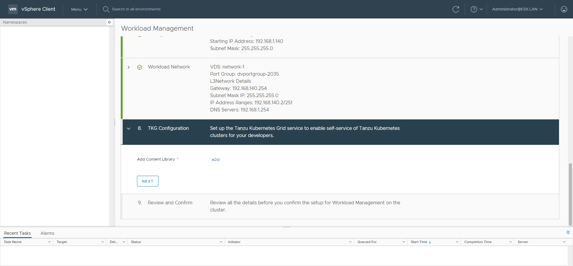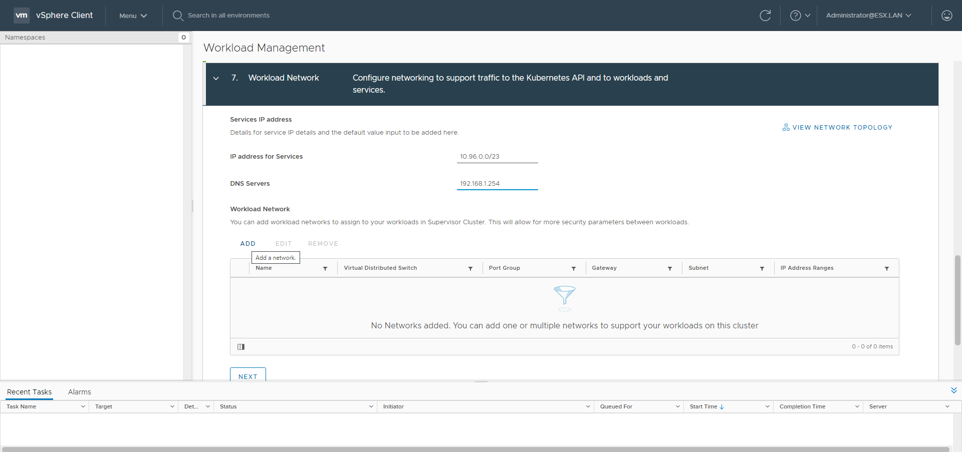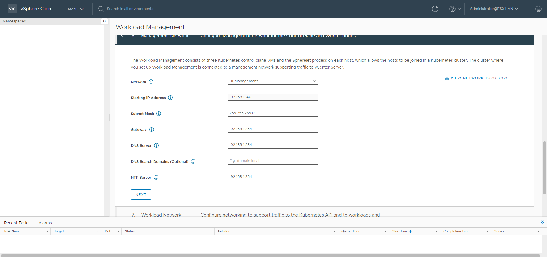 TKG-S Setup with vCenter Server Network - Part 1